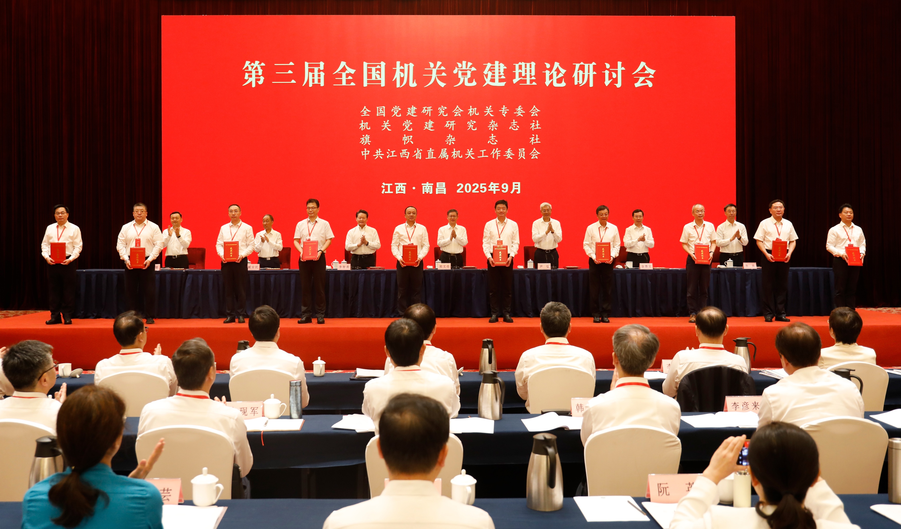 此次會(huì)議由全國黨建研究會(huì)機(jī)關(guān)專委會(huì)、機(jī)關(guān)黨建研究雜志社、旗幟雜志社和江西省直屬機(jī)關(guān)工委聯(lián)合舉辦。全國黨建研究會(huì)常務(wù)理事、中央組織部原秘書長臧安民,全國黨建研究會(huì)機(jī)關(guān)專委會(huì)主任委員、中央和國家機(jī)關(guān)工委原副書記李勇,江西省委常委、秘書長、省直機(jī)關(guān)工委第一書記陳敏出席會(huì)議。中央黨校(國家行政學(xué)院)、司法部、應(yīng)急管理部、黑龍江、江西、長春等有關(guān)單位代表作了交流發(fā)言。會(huì)議還表彰了2025年機(jī)關(guān)黨建優(yōu)秀課題研究成果。中央和國家機(jī)關(guān)部分部門機(jī)關(guān)黨委,各省(區(qū)、市)、新疆生產(chǎn)建設(shè)兵團(tuán)及副省級(jí)城市機(jī)關(guān)工委,部分地市機(jī)關(guān)工委有關(guān)負(fù)責(zé)同志,有關(guān)課題組負(fù)責(zé)同志,共約150人參加會(huì)議。
